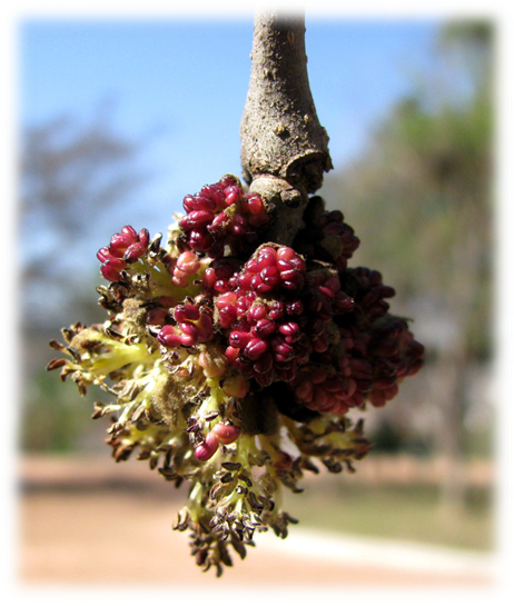 Який вид має квіти двостатеві, жовті, блискучі, в повислих китицеподібних суцвіттях з медовим запахом?