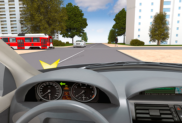 Як повинен вчинити водій у даній ситуації в разі руху прямо?