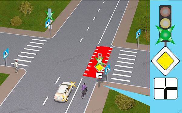 Чи повинен водій автомобіля дати дорогу велосипедисту в даній ситуації?