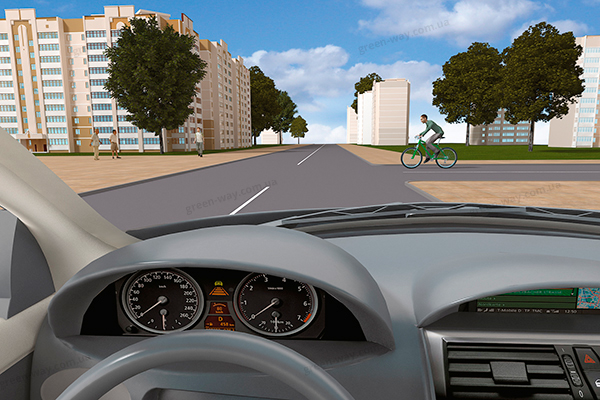 Рухаючись прямо на даному перехресті, Ви повинні: