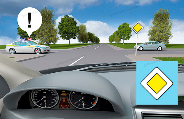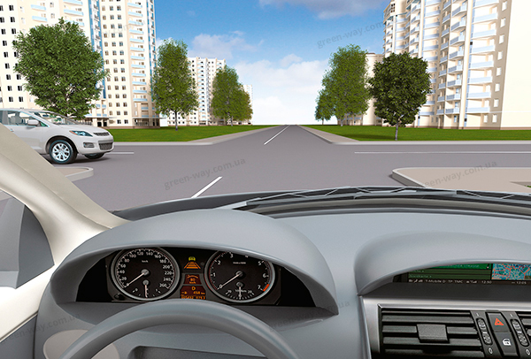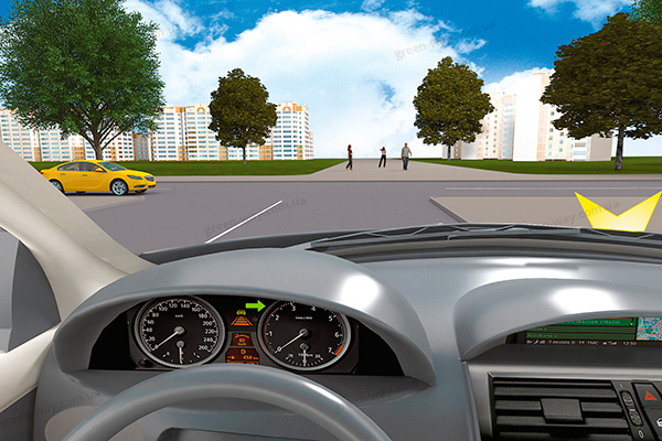 Рухаючись прямо на даному перехресті, Ви повинні: