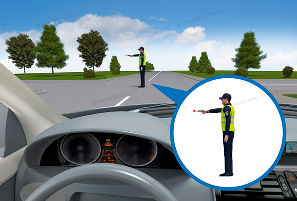 У якому напрямку Ви можете продовжити рух на даний сигнал регулювальника?