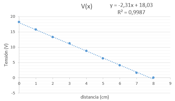 Se ha realizado un ajuste por mínimos cuadrados de la variación de la capacidad de un condensador plano, con un dieléctrico que rellena completamente las armaduras de dicho condensador, y el cociente superficie/distancia entre las placas conductoras de dicho condensador. Si la ecuación que se ha obtenido en el ajuste por mínimos cuadrados es , es CIERTO que :