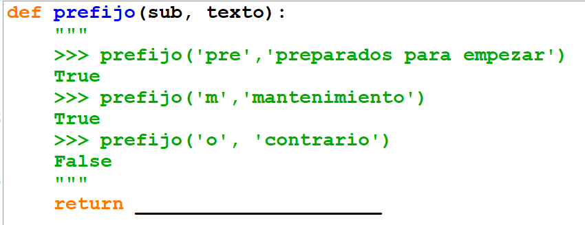 La siguiente función prefijo(texto,sub) indica si una variable str sub es un prefijo de la variable texto.
