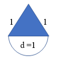 La siguiente figura está compuesta por un triángulo y una semicircunferencia de diámetro uno (Ver figura), en la cual su centro está perfectamente alineado con el centro de la base del triángulo.
