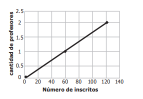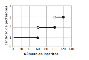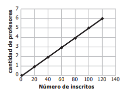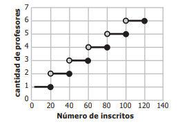 El colegio decide que cada grupo de deportes cuente máximo con 20 asistentes y asigna un profesor a un único grupo. Para proyectar los costos por cuenta de los honorarios docentes, se elabora la gráfica que representa la cantidad de profesores en función de la cantidad de inscritos. Esta gráfica es