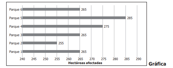 La gráfica muestra el área afectada en cada uno de los parques en los que hubo incendio forestal durante un fuerte verano.