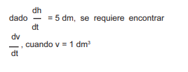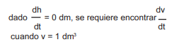 ¿Cuál de los siguientes planteamientos es suficiente para encontrar la rapidez con la que desciende el nivel del agua cuando está a una altura de 10 dm?