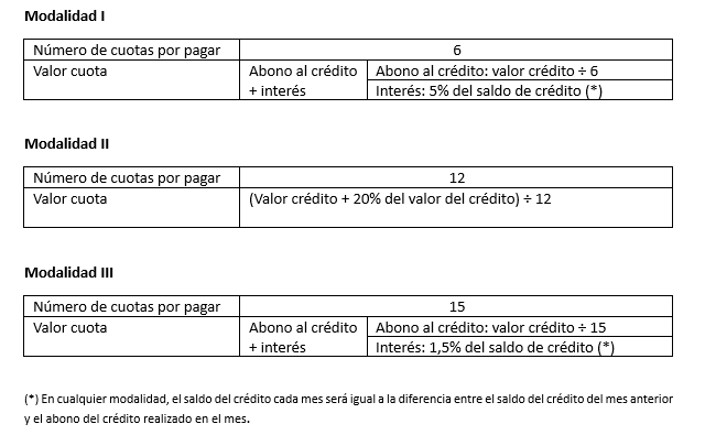 Para adquirir un crédito por $6.000.000, Verónica solicita a un Banco la información de las modalidades de pago de crédito. Un asesor le da la siguiente información: