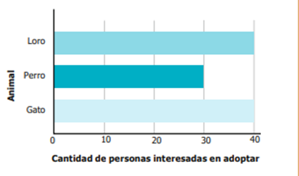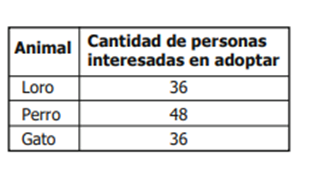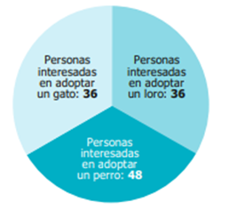 El líder de un programa de adopción de mascotas encuestó a 120 personas para conocer qué animal les interesaría adoptar. Del total de encuestados, el 30% adoptaría un loro, el 40% adoptaría un perro y el 30% adoptaría un gato.