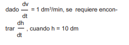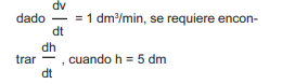 ¿Cuál de los siguientes planteamientos es suficiente para encontrar la rapidez con la que desciende el nivel del agua cuando está a una altura de 10 dm?