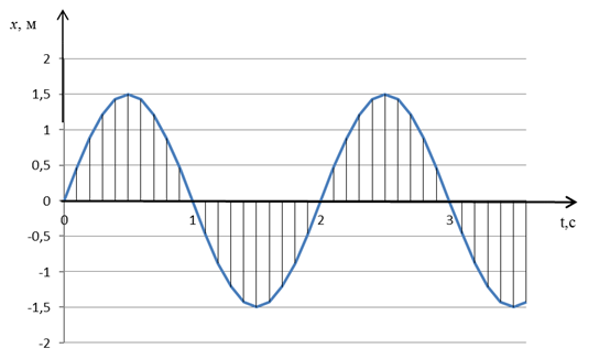 Пружним шнуром поширюється зі швидкістю 5 м/с механічна хвиля. На рисунку подано графік коливань деякої точки шнура. Установіть відповідність між фізичними величинами, що характеризують хвилю, та їх значеннями в одиницях СІ.