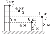 Укажи, яке з наведених на рисунку тіл має найменшу потенціальну енергію відносно Землі