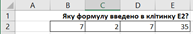 Укажи, яку формулу введено у клітинку Е2