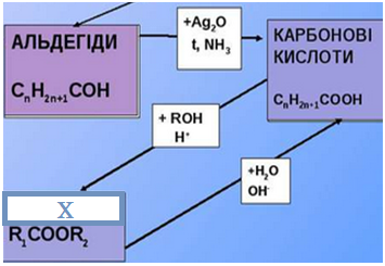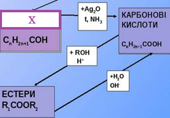 Укажи назву класу органічних сполук, позначеного на схемі літерою Х