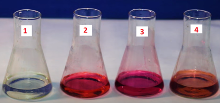 Укажи номер колби, в якій проводили змішування розчину етанової кислоти з розчином фенолфталеїну