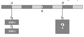 Яку масу m3 має вантаж, якщо важіль знаходиться в рівновазі. Маса вантажів з лівого боку важеля перших двох становить відповідно m1 = m2 = 100 г? Важіль невагомий та перебуває у рівновазі.