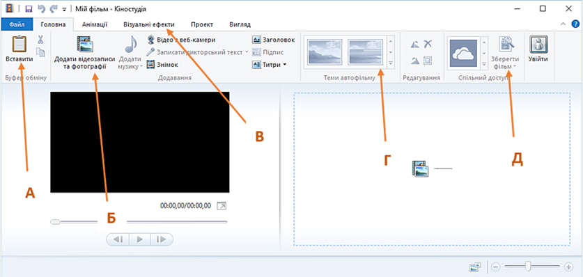 Укажи кнопку, яка надає можливість зберегти створений відеокліп у форматі відео