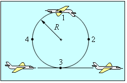 Укажи, в якій точці траєкторії при виконанні мертвої петлі тиск на пілота з боку сидіння літака буде мінімальним