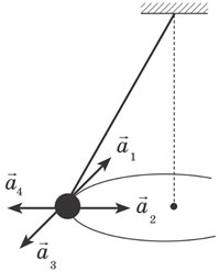 У якому випадку напрямок прискорення рівномірного руху кульки показано правильно?