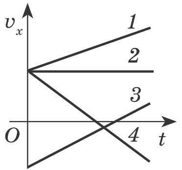 Тіло кинули вертикально вниз. Укажи, який графік залежності проєкції швидкості руху тіла від часу може відповідати цьому рухові