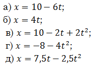 Установи відповідність між рівняннями руху і їхнім видом і значенням проєкції швидкості в момент часу 1 с: