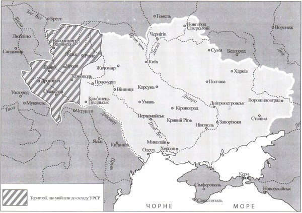 Познач назву заштрихованих територій і рік їх входження до складу УРСР