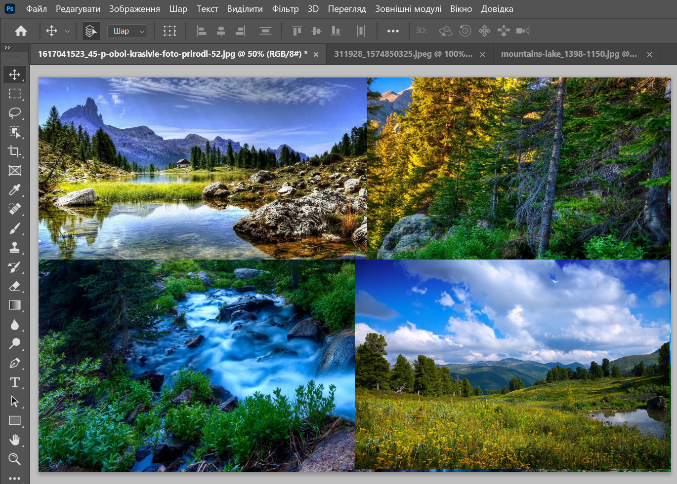 Назви перший крок у створенні колажу за допомогою Photoshop