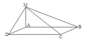 Відрізок AM проведено перпендикулярно до площини прямокутника ABCD. Укажи, до якої з вершин прямокутника від точки М найбільша відстань