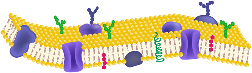 Укажи, які органічні речовини є основою клітинної мембрани, зображеної на малюнку