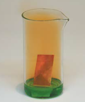 Укажи назву речовини бурого кольору, що утворюється як один із продуктів реакції на фото: