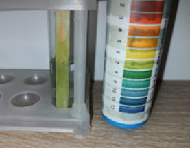 Задача 1 . У трьох пробірках без підписів є розчини солей: натрій ортофосфату, амоній нітрату й натрій нітрату. Євгенія використала універсальний індикаторний папір і опустила індикаторний папірець у кожну пробірку. В одній з них дівчина отримала наступний результат. Укажи, яка сіль була в цій пробірці: