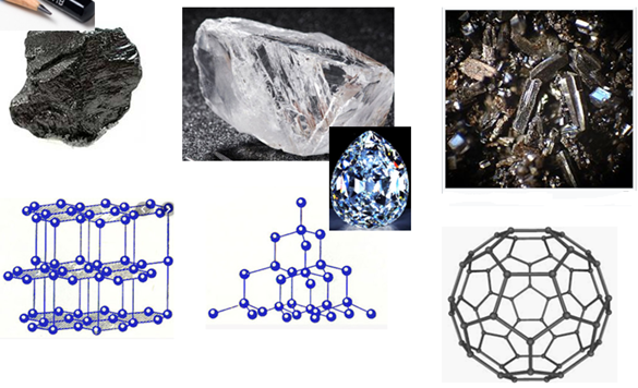Укажи, алотропні модифікації якого хімічного елемента представлені на фото