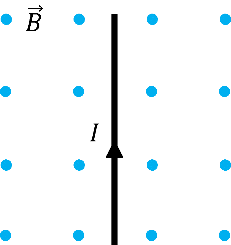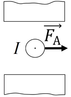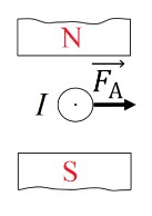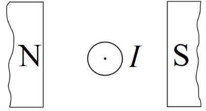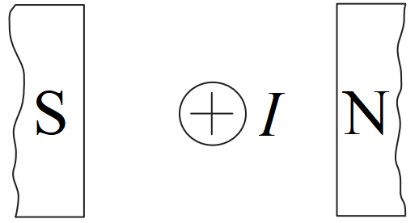 Визнач напрямок сили Ампера, що діє на провідник зі струмом у магнітному полі, для випадку, зображеному на рисунку