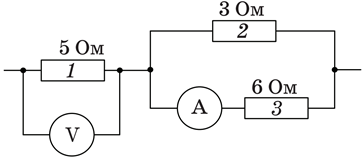 На рисунку подано схему ділянки електричного кола. Скориставшись даними рисунка, визнач показ вольтметра, якщо амперметр показує 0,2 А. Відповідь подати у В