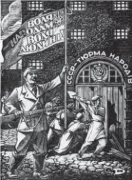 На фотографії зображено один із плакатів проєкту «Відважні: наші герої», що відтворював образи різних поколінь українців ХХ— ХХІ століть через реконструкцію революційної атрибутики та вбрання учасників подій.