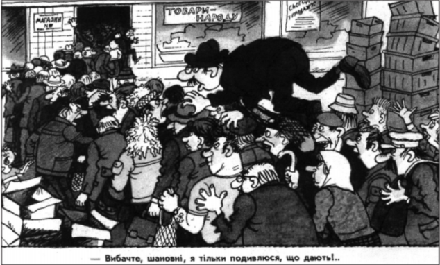 Укажи, яке явище радянської дійсності 1980-х рр. відображає карикатура