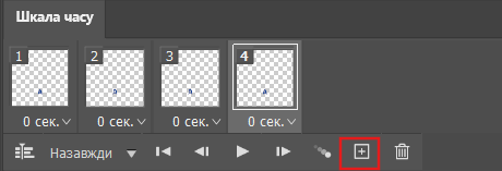 9. Для першого кадру відключаємо видимість усіх шарів, окрім шару «Шар 1». Створюємо ще 3 копії виділених кадрів.