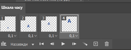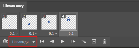 12. Вибираємо четвертий кадр і залишаємо в ньому видимим шар «Шар 4». Далі виставляємо час відображення для кожного кадру — 0,1 секунди.