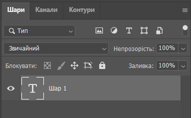 2. Обираємо інструмент «Текст» і пишемо велику букву «А». Підпиши «Шар 1».