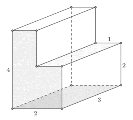 Знайди об’єм многогранника, зображеного на рисунку (усі двогранні кути многогранника прямі).