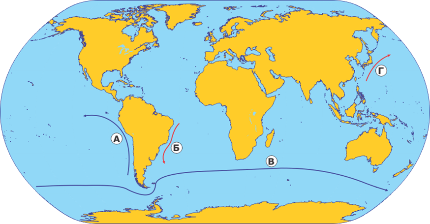 Укажи, якою літерою на карті позначено течію Західних вітрів