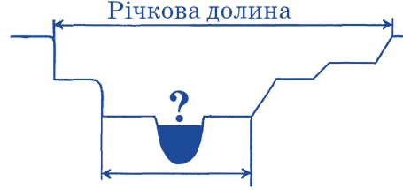 Укажи, як називається частина річкової долини, позначена на схемі знаком питання