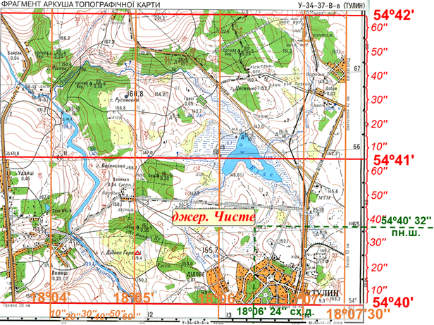 Установи за топографічною картою географічні координати джер. Чисте