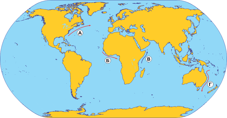Укажи, якою літерою на карті позначено Сомалійську течію