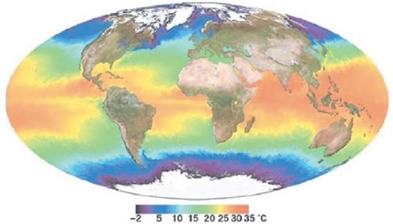 Укажи причину закономірної зміни температури поверхневих вод Світового океану від екватора до полюсів