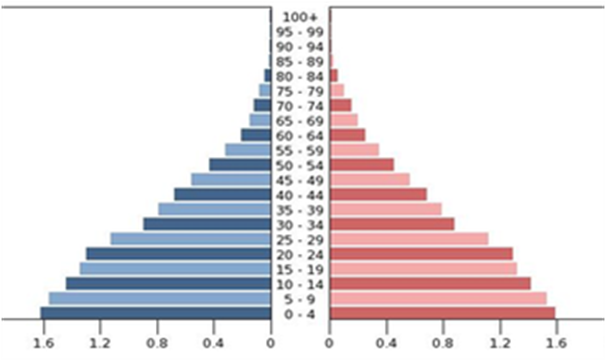 Проаналізуй статево-вікову піраміду однієї з країн світу й укажи напрям діяльності уряду цієї країни з огляду на теперішню демографічну ситуацію в ній