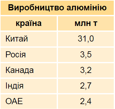 Розглянь таблицю країн-лідерів за сегментами глобального ланцюга доданої вартості в алюмінієвій промисловості (на 2017 р.). Увідповідни країни-лідери за виробництвом алюмінію з місцями, які вони посідають