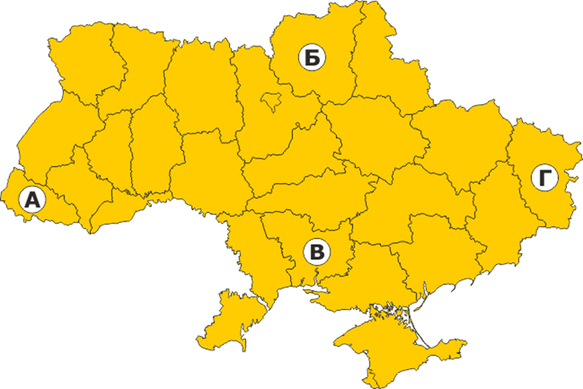 Увідповідни область України, яка позначена на карті буквою, з її назвою
