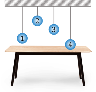 Укажи, яка з однакових кульок має найменшу потенціальну енергію відносно поверхні столу